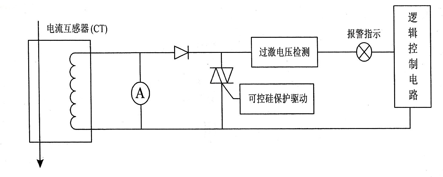 当电流互感器因故障开路时,指示灯亮,可控硅导通(6A)保护电流互感器。