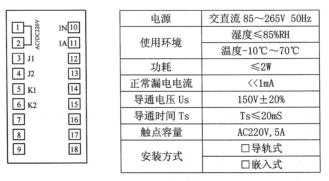 K1、K2为继电器输出接点,容量为AC:250V/5A DC:110V/2A