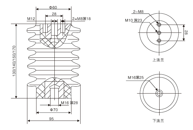 CG5-12KV高压传感器通过抽压电容芯棒,从高压带电回路中抽取一定的电压作为显示和闭锁的电源,用于反映装置设置处的带电状态,并能强制闭锁开关网门。电压指示和强制闭锁的工作,均受同一高压信号所控制,但电路系统又是相互独立的.只要高压回路带电,那么即使显示电路和闭锁电路同时出了故障,电磁锁仍处于闭锁状态。因此产品的防误闭锁可靠性大,安全度高。传感器全部按全工况要求设计,爬电距离满足技术要求.显示器外观新颖,电子元件全部进行筛选,组装精致。传感器为环氧树脂浇注支柱绝缘子式产品。可做为隔离开关,接地开关和其它支柱绝缘子使用,具有高强度,耐电弧能力强,局部放电量小等特点。